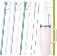 Многоразовые пищевые силиконовые соломинки с соломенной крышкой, сменные силиконовые соломинки, совместимые с чашкой Стэнли